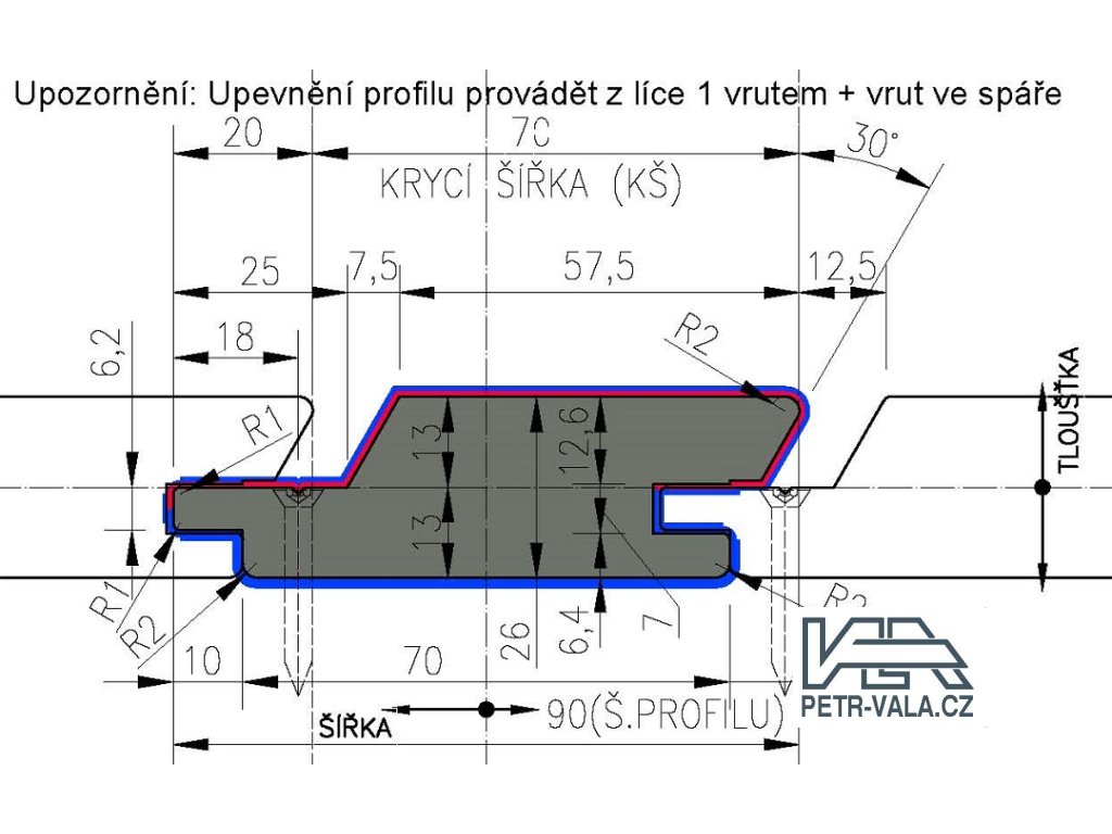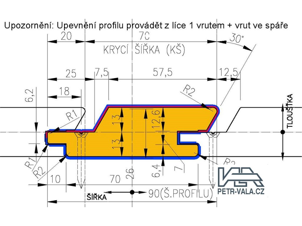 | Šířka profilu - Krycí: | 70 mm |