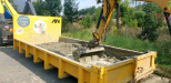 Povodně v roce 2024 nás nepřekvapily, protože jsme již měli zabetonovanou základovou desku, vodu jsme vyčerpali a pokračovali v betonáži opěrných stěn.