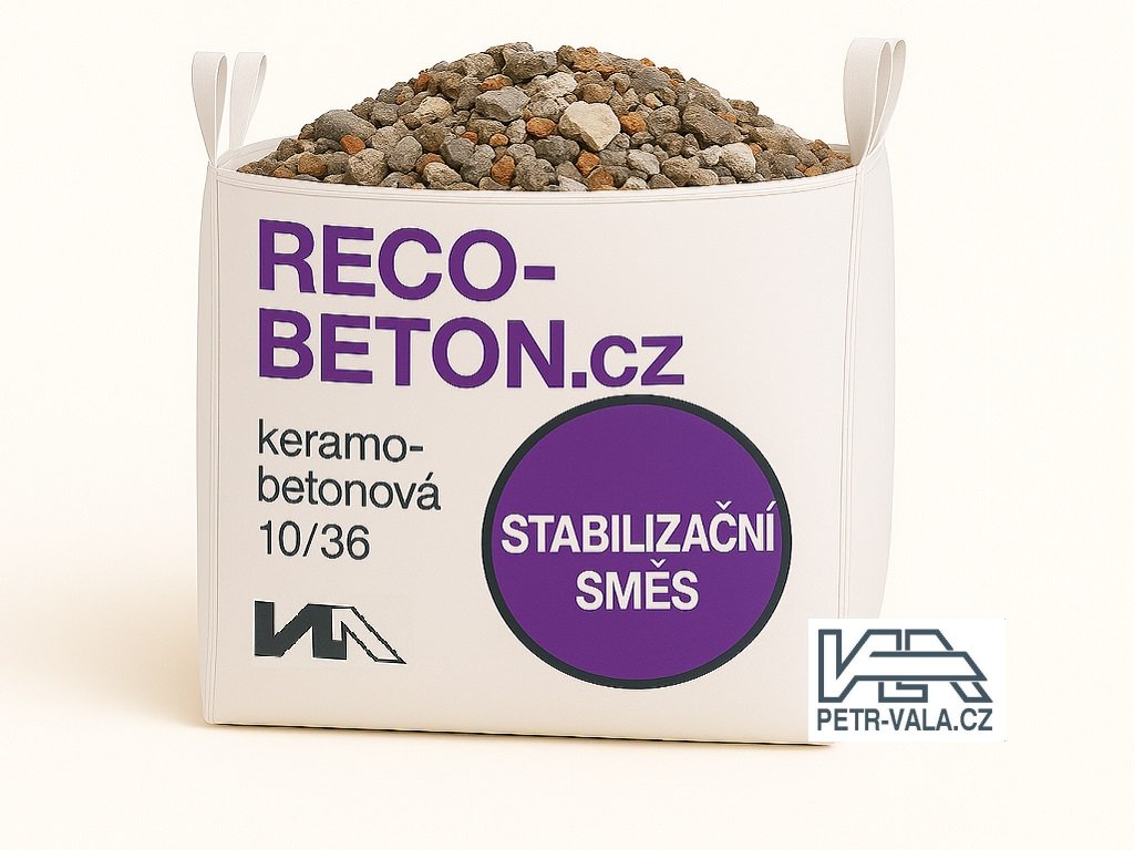Stabilizační směs RECO-BETON je ekologický stavební materiál vyráběný z keramo-betonových recyklátů frakce 10/36 nebo 36/128 mm a jemné sádrové drtě, která slouží jako příměs pro zlepšení pojivých a fyzikálních vlastností směsi. Směs představuje plnohodnotnou náhradu klasických podsypových a zásypových materiálů používaných při výstavbě zpevněných ploch a technických vrstev terénu.